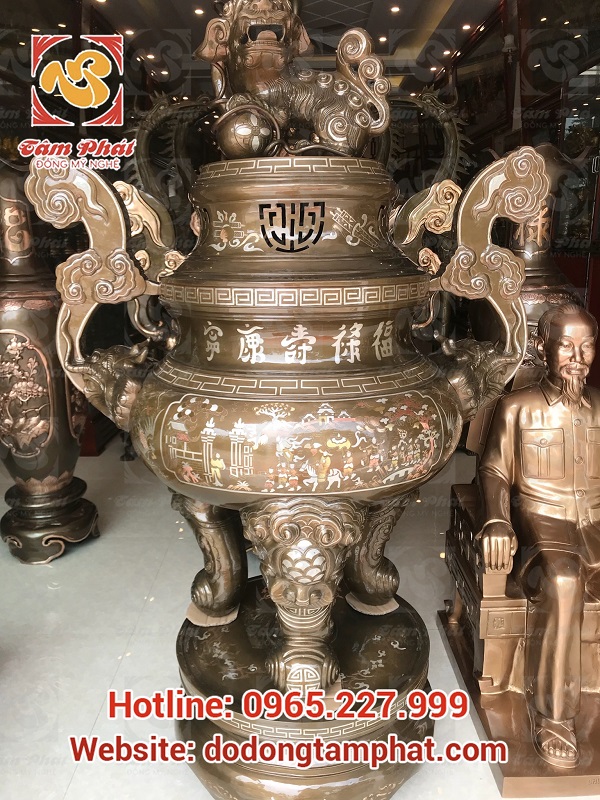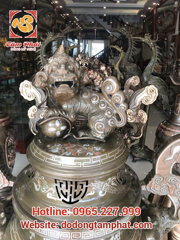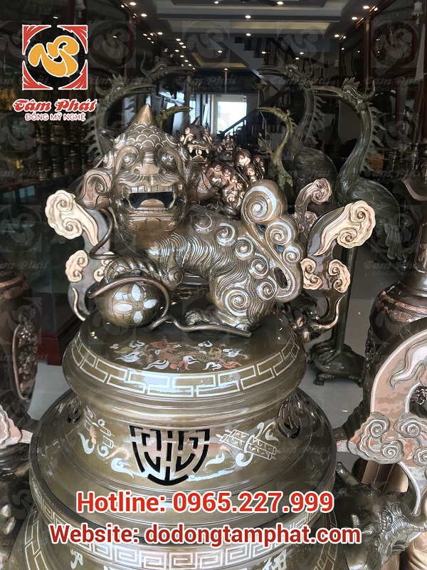 >>> Đỉnh thất lân vờn cầu khảm tam khí "Phúc, Lộc, Thọ, Khang, Ninh" cao 90cm cực tinh xảo