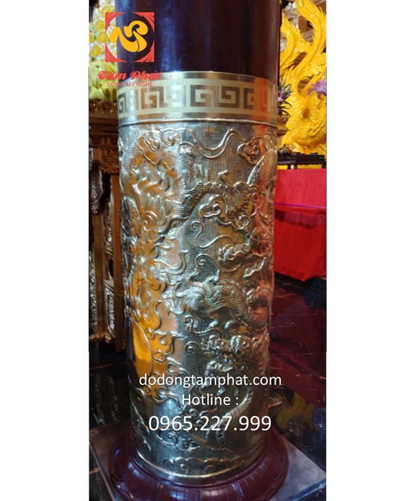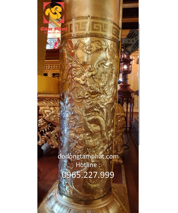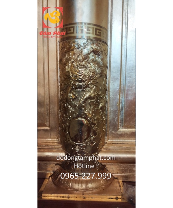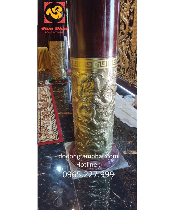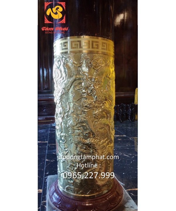 Truyền thuyết dân gian miêu tả loài rồng với những đặc điểm như mình rắn, vảy cá chép, sừng hươu, mũi sư tử, có râu cằm… Tất cả những chi tiết trên hiện lên sinh động với bàn tay chạm khắc tài hoa của người nghệ nhân. Quan sát ốp cột gỗ bằng đồng, các bạn sẽ thấy hình ảnh thần thú xuất hiện ở giữa. Phía bên trên là đường viền gấp khúc. Hoa văn xoắn vuông nhịp nhàng, sống động. Phần phía dưới của chân cột có những cánh sen xòe nở. Chi tiết này mang đến diện mạo đầy trang nhã. Nếu như thần thú thể hiện cho sự hưng thịnh thì hoa sen lại có ý nghĩa bình an, thanh tịnh. Bên cạnh thiết kế bắt mắt, giàu chiều sâu nghệ thuật thì sắc thái sản phẩm cũng rất cuốn hút. Các bạn có thể thấy ánh hoàng kim tươi sáng, rạng ngời của đồng nguyên chất. Nó tạo nên sự tương phản với gam màu trầm mặc của gỗ!Bọc đồng chân cột nhà gỗ với chất lượng đỉnh cao