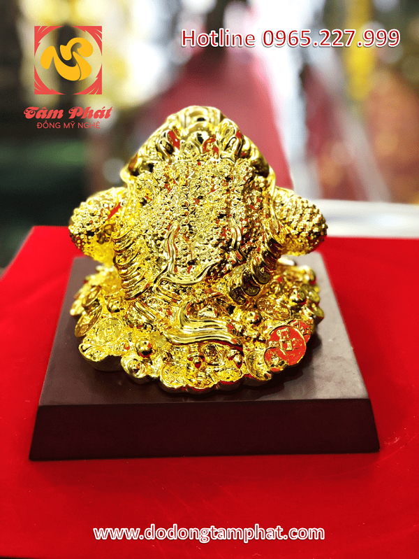Tượng cóc 3 chân chiêu tài chiêu lộc thếp vàng đẹp mắt của đồ đồng Tâm Phát