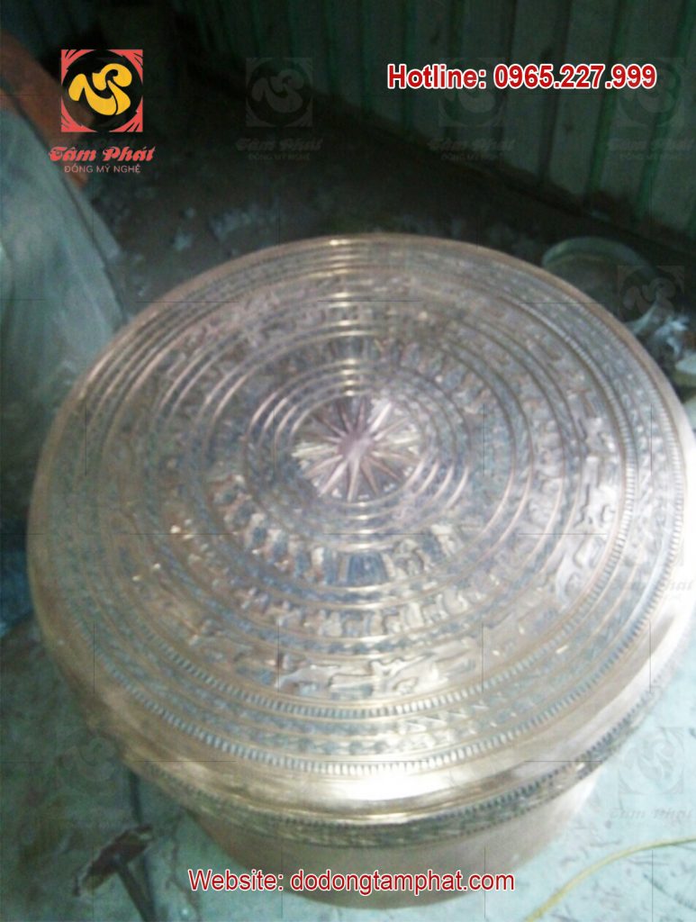 Trống đồng thiếp vàng 24K là một sản phẩm cao cấp được sử dụng rộng rãi làm trang trí, quà tặng. Đồng mỹ nghệ Tâm Phát sản xuất và phân phối trống đồng thiếp vàng 24K với đầy đủ các kích thước khác nhau Tên gọi sản phẩm: Trống đồng thiếp vàng 24K Chất liệu: đồng đỏ đúc nguyên khối, mạ vàng 24K Kích thước: Đường kính 70cm Ngoài ra Đồng mỹ nghệ Tâm Phát sản xuất các kích thước khác nhau tùy theo nhu cầu của khách hàng Màu sắc: Màu vàng 24K Quy trình sản xuất: