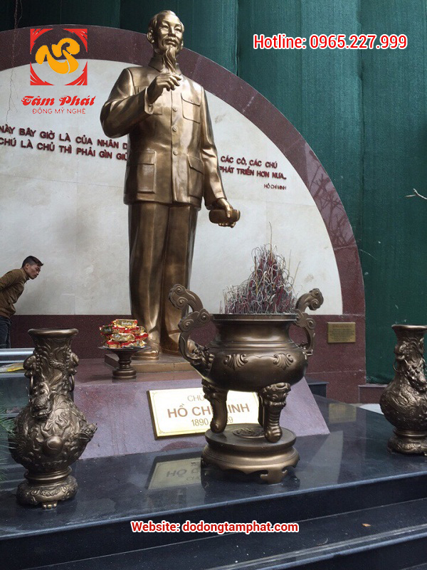 Hình ảnh Bác Hồ đã đi sâu vào tâm trí người dân đất Việt, có lẽ vì vậy những hình ảnh thân thương giản dị của vị cha già dân tộc luôn sống mãi. Hình ảnh Bác vẫy tay chào con dân, cán bộ với một nét đẹp điềm đạm thanh nhã được Tâm Phát tạc đúc lại, lưu truyền những nét đẹp qua tượng Bác Hồ vẫy tay chào bằng đồng. Tên gọi sản phẩm: Tượng Bác Hồ vẫy tay chào bằng đồng Chất liệu: Đồng đỏ nguyên chất đúc liền khối Sản phẩm có thể được mạ vàng cao cấp 24K cao cấp để tăng độ bền và sự trang trọng, tôn nghiêm Kích thước: 50 cm, 60 cm… Ngoài ra Đồng mỹ nghệ Tâm Phát sản xuất các kích thước khác nhau tùy theo nhu cầu của khách hàng Màu sắc: Màu đồng đỏ hoặc màu vàng 24K Quy trình sản xuất: