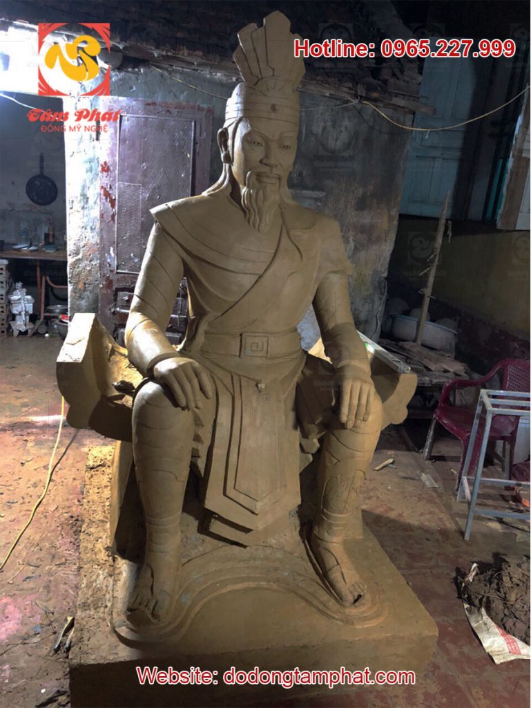 Tượng đồng Quốc tổ Hùng Vương linh thiêng, uy nghi được sản xuất trực tiếp từ đồng đỏ tại xưởng Tâm Phát. Đây là sản phẩm có kích thước lớn phù hợp với những không gian rộng để tạo nên sự hài hòa cân đối. Tên gọi sản phẩm: Tượng đồng quốc tổ Hùng Vương Chất liệu: đồng đỏ nguyên chất đúc liền khối Kích thước: 2m Ngoài ra Đồng mỹ nghệ Tâm Phát sản xuất các kích thước khác nhau tùy theo nhu cầu của khách hàng Màu sắc: Màu đồng đỏ Quy trình sản xuất: